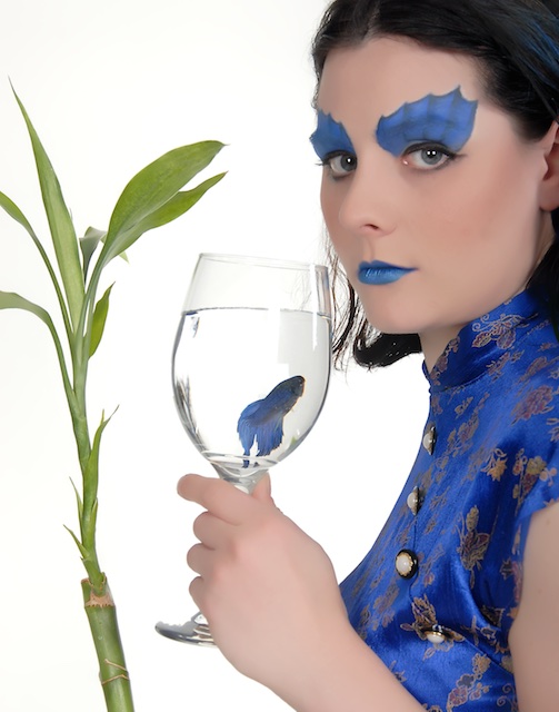 I’d been wanting to do a joint shoot with Heather and Marisa here, but don’t ask how I came up with this one! Two models, two fish, my tattoo artist on makeup, several people thinking I’m out of my mind…and here we are. This took…many tries! Animals are can be pretty tricky to shoot and these lovely male models were no exception. CLICK! Annnnnnd the fish has retreated to the reflective part of the glass and is now invisible! Anyway…it was a fun/slightly nutty day, and both fish went on to live long and happy lives. Although my cat was very interested….