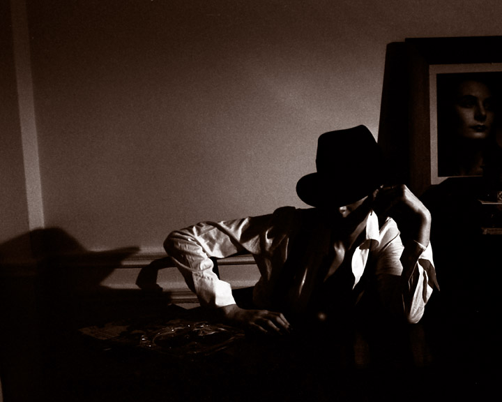 This is one of my last shoots in apt 1003, and I can’t take credit for the concept. Theda came with the idea to do a Maltese Falcon/Sam Spade turned into a Fosse/burlesque type thing, so we took full advantage of the pre-war setting. This was after I had her doing strange gymnastics in the fireplace…