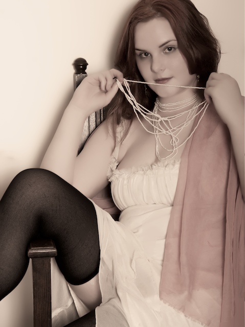 I find vintage style to be a great way for first time subjects to play around with the concept of sexy. It can range from just a hint of leg peeking out from a robe, to quite nude! Up to you how you want to do it!